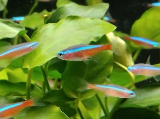 カージナルテトラ、レッドテトラ、トランスルーセント、コリドラス イルミネータス・ゴールド、ゴールデン ハニーグラミー、コリドラス パンダ、コケ取り貝、セルフィンプレコ、バイオレッド スネークヘッド ほか