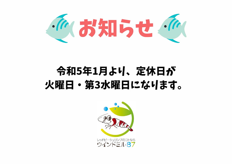 誠に勝手ながら、令和5年(2023年)より、定休日を火曜日・第3水曜日とさせていただきます。