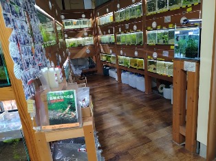 ネオンテトラ、ワイルドラミーノーズテトラ、ワイルドレッドファントム・ルブラ、ミッキーマウスプラティ、タイガープレコ、ヒドジョウ、ミナミヌマエビ、ヤマトヌマエビ、東錦、オランダ、丹頂、琉金ほか